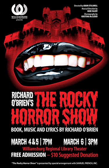 Musical Poster & Logo DesignPromotional poster design, created in Adobe Photoshop, based on a brief that specified that the traditional red "Rocky Horror Show" lips would be black in this production, and that the preference would be for the poster to likewise be dark.