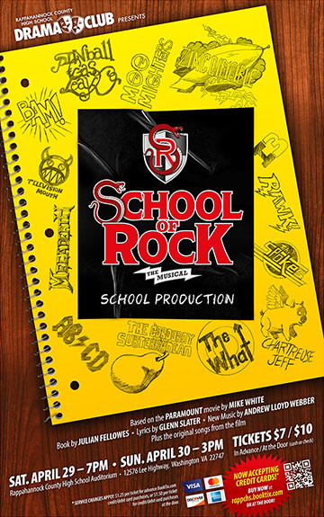 Musical Poster & Program DesignPromotional poster design using supplied show logo and satirical band logos produced by another artist, created in Adobe Photoshop.